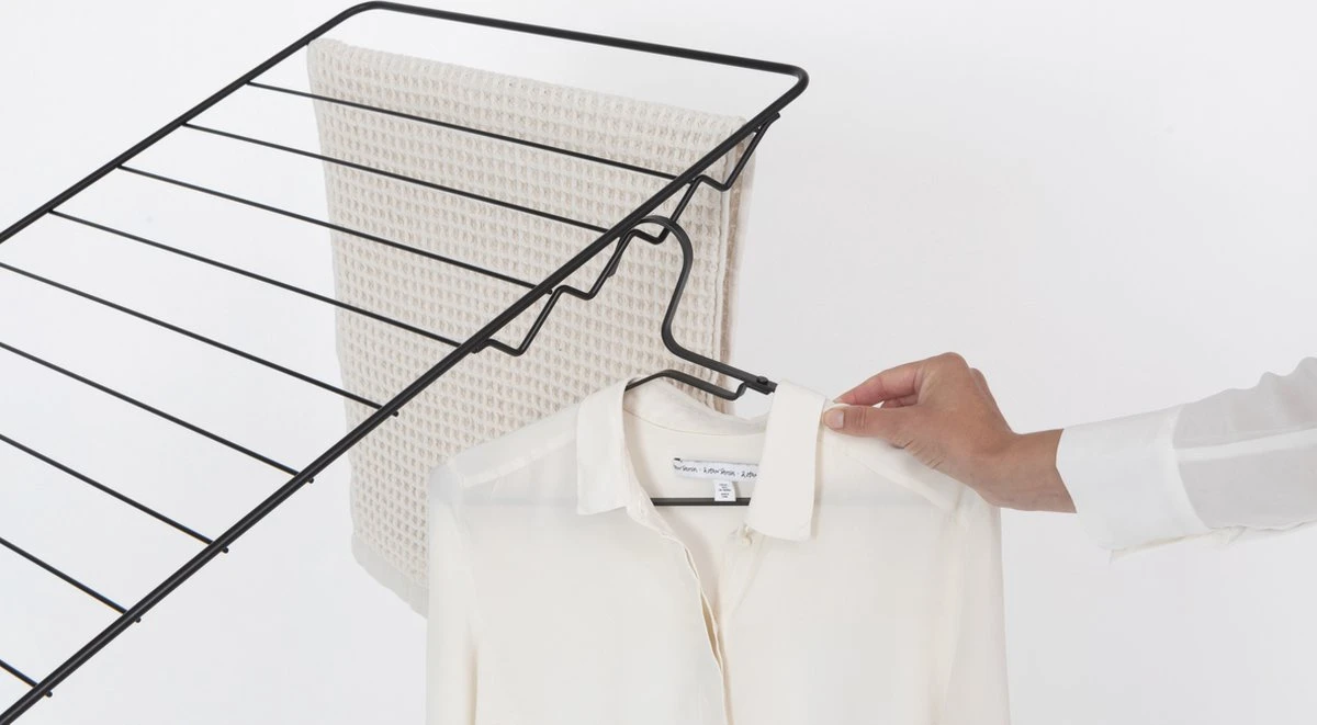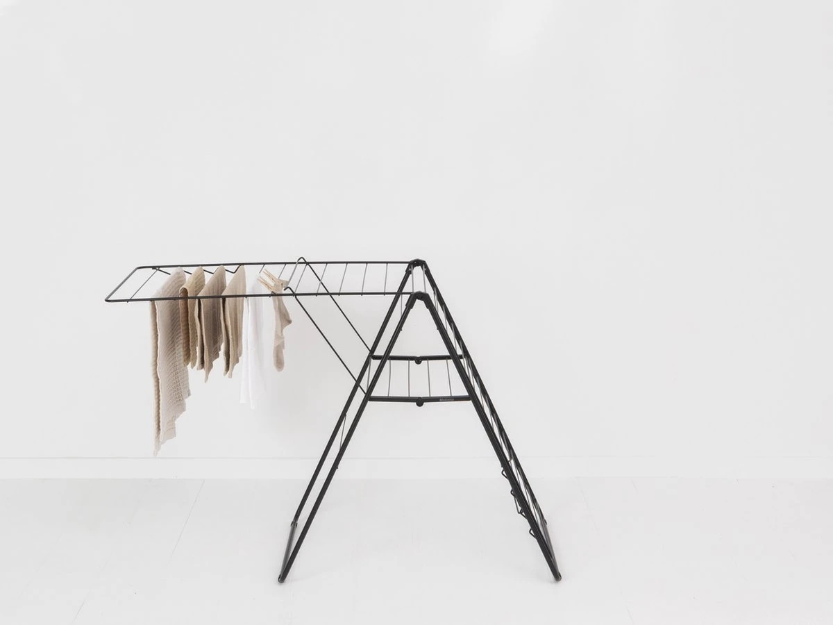Bespaar energiekosten, vergeet je droger en hang je kleding op een droogrek uit de Brabantia HangOn serie. Stabiel, gemakkelijk in gebruik en verkrijgbaar in verschillende formaten in de kleuren Matt Black, White of Metallic Grey.