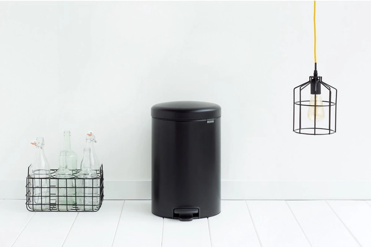 De Brabantia newIcon Prullenbak – 20 l – Matt Black met kunststof binnenemmer is ideaal voor in je keuken en huiskamer. Dankzij de grote inwerpopening kun je gemakkelijk afval weggooien zonder te morsen. Brabantia’s newIcon pedaalemmers zijn niet alleen iconische schoonheden, ze zijn ook betrouwbare hulpjes in de huishouding. Stevig en altijd stabiel, dankzij hun antislip onderkant en anti-kantel blok.